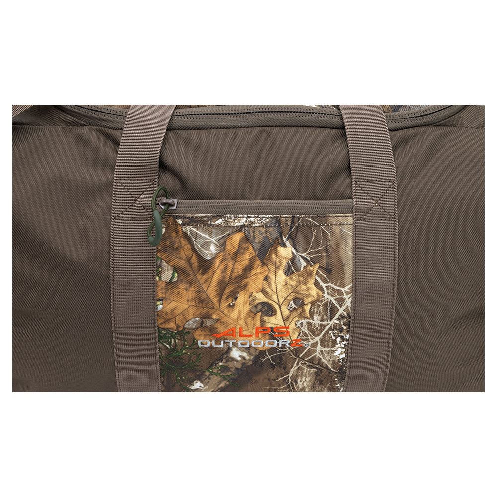 Die Alps Outdoorz High Caliber Reisetasche ist hervorragend geeignet für Campingausflüge und zum Verstauen Ihrer persönlichen Ausrüstung bei Jagdexpeditionen. Zusätzlich zum Hauptfach verfügt diese strapazierfähige Tasche über zwei Endfächer und eine seitliche Reißverschlusstasche für kleinere Utensilien. Die robusten U-förmigen Reißverschlüsse sind äußerst langlebig und benutzerfreundlich. Die Alps Outdoorz High Caliber Reisetasche ist mit einem abnehmbaren Schultergurt und gepolsterten Tragegriffen ausgestattet. Darüber hinaus befinden sich an beiden Enden zusätzliche Tragegriffe.