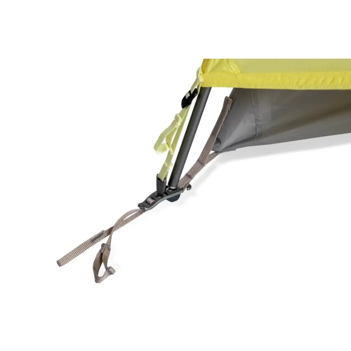 Geräumiger Innenraum: Vorgebogene, zentral positionierte Aluminiumstangen vergrößern den Raum sowohl am Kopf- als auch am Fußende des Zeltes und sorgen für Komfort und Bewegungsfreiheit.