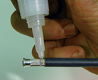 Anweisungen: Reinigen Sie Einsätze und das Innere der Pfeilschäfte mit der warmen 50%igen Simple Green®-Lösung, spülen Sie sie ab und lassen Sie sie an der Luft trocknen. Pfeile, Einsätze und Klebstoff sollten Raumtemperatur haben.