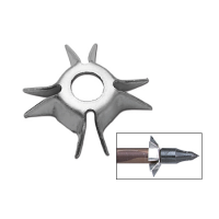 Die S.G.H. (Small Game Head) ist speziell für Kleinwild konzipiert. Ihr einzigartiges Nasen- und Klingendesign erzeugt eine „Schock- und Reißwirkung“, die Kleinwild unmittelbar stoppt. Die stumpfe Spitze sorgt für den „Schock“, während die gebogenen Klingen die „Reißwirkung“ hervorrufen und gleichzeitig verhindern, dass sich der Pfeil in den Boden bohrt. Ideal für die Jagd auf Kleinwildarten mit jeder Art von Bogen bei jeder Geschwindigkeit.