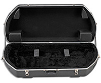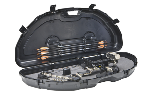 Einfache Hartschalenbogenkoffer haben eine muschelartige Form, eine Säulenstruktur, schaumstoffgepolsterte Böden, Bogengurte, Pfeilhalter, vier Schnappverschlüsse und Verriegelungsringe. Diese robusten Koffer sind äußerst widerstandsfähig und erfüllen ihren Zweck zuverlässig. Das größere Modell 1111 kann erforderlich sein, um bestimmte Bögen mit unregelmäßiger Form unterzubringen.