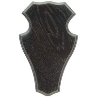 Ein äußerst stilvolles, dunkel getöntes Trophäenbrett aus Eichenholz. Es eignet sich hervorragend für kleinere Hirscharten wie das Reh.
