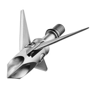 WHAT IS A BROADHEAD? A broadhead is basically a flying razor blade. This is the business-end of the hunting arrow. Broadheads are designed to cause death by hemorrhage and exsanguination. A good broadhead flies straight, penetrates the target deeply and slices through soft tissue like butter. We know it sounds gruesome, but the more brutally effective a broadhead is, the more ethical the game harvest it yields. A perfectly placed shot with a high quality broadhead can bring big game down in mere seconds. So when it’s time to unscrew the practice tips and load the real ammunition, you want the best broadhead you can get your hands on. Speaking of “hands on”, be advised that broadhead blades are sharp. Be very careful when handling broadheads. They will easily slice through clothing, fingertips, YOUR BOW STRING, etc. If you even touch your razor sharp broadhead blade to your high-tension bow string, it’s all over.