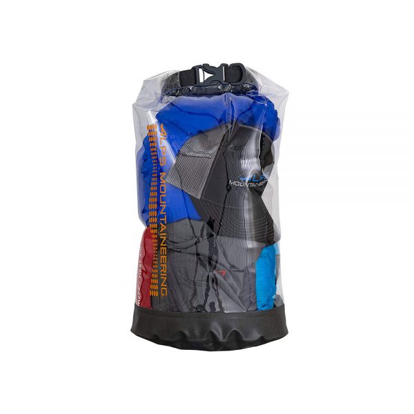 The ALPS Mountaineering Clear Passage Series offers abrasion resistant mid-weight dry bags constructed of durable waterproof TPU material, and 420D nylon TPU coated bottom, with fully welded seams. The bag’s superior construction along with a secure roll-top closure locks out water and offers a tenacious water barrier in wet environments. An oval-shaped, flat bottom helps the bags stand up on their own and make them easy to fill. A D-Ring attachment point is included for additional gear lashing, stacking, or attachment to your water craft. The most adventurous can’t go wrong with the Clear Passage Series. Offered is capacities to fit your needs: 5L, 10L, 20L, and 35L.