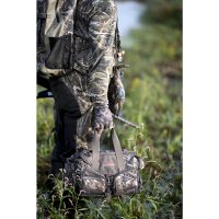 The Floating Deluxe Blind Bag has been designed with an array of convenient features, such as a removable interior dividers, a clear valuables pocket for your cell phone and other accessories, and a hard sunglasses case. The main compartment is constructed of non-absorbing, closed-cell foam and sealed with a waterproof membrane that will keep your gear dry when sitting in water or mud. The bag also includes a multitude of pockets to give you countless organization options, as well as a thermos & jacket sleeve on the top. The Floating Deluxe Blind Bag also features a padded carry handle and shoulder strap to make transporting your gear stress-free.