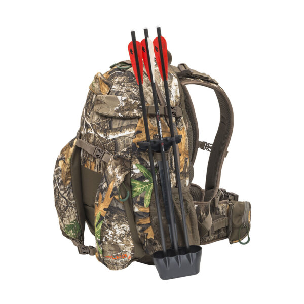 Finally, a pack that can comfortably carry a Crossbow, Compound Bow and Rifle! There is a unique fastening system that secures your weapon of choice to both sides of the pack, making this pack extremely versatile. The secret is that there are two padded straps at the top of the pack that start in the middle and wrap around the weapon, then fasten to each side. There are also two “Wing Pockets” on the front of the pack that will help secure and protect your weapon even more. If you do not wish to carry your weapon on the pack then the “Wing Pockets” work great to carry extra gear or strap down heavier loads. We even include two extension lashing straps for larger loads. At the bottom of the pack there is a drop down pocket that helps keep your weapon secure. Inside of the main compartment there is an organizational pocket to help keep some of your smaller gear organized. It has a padded waist belt with two pockets, one on each side. Also, it has a padded shoulder harness for a very comfortable carry. It has a center aluminum stay for added support when you are carrying heavier loads. Also included is a blaze orange rain cover in case you run into a rain shower or need extra orange in your attire. It has a hydration pocket and port. If you’re a hunter, this is the pack for you. It will make your hunts more enjoyable because your hands will be free to battle the terrain or to carry other gear if necessary.