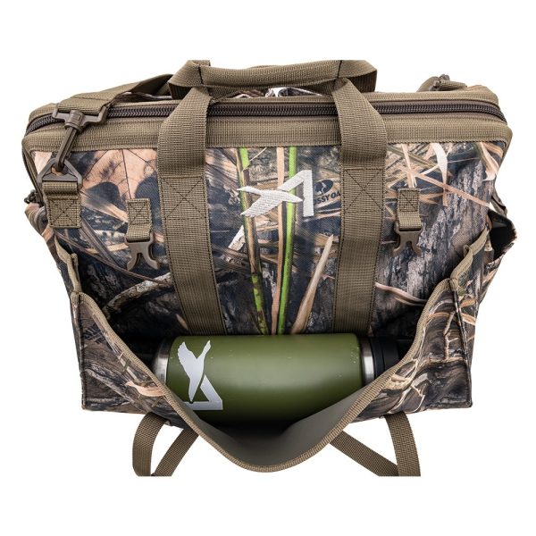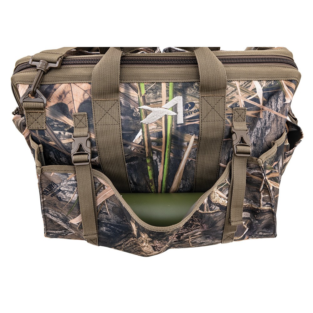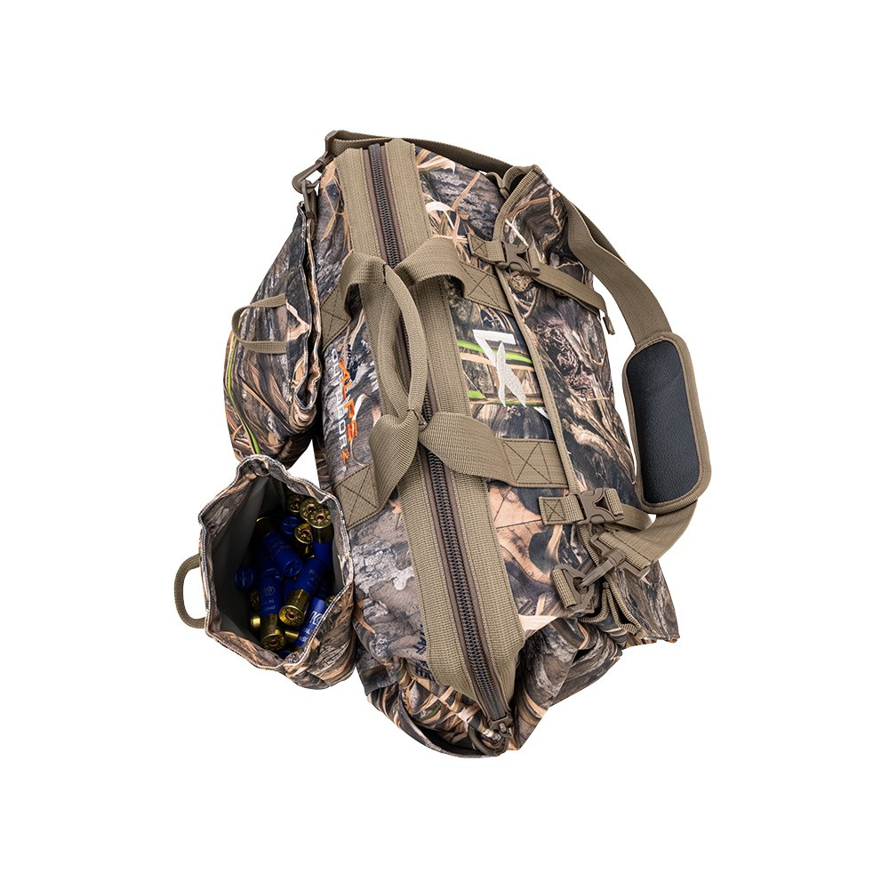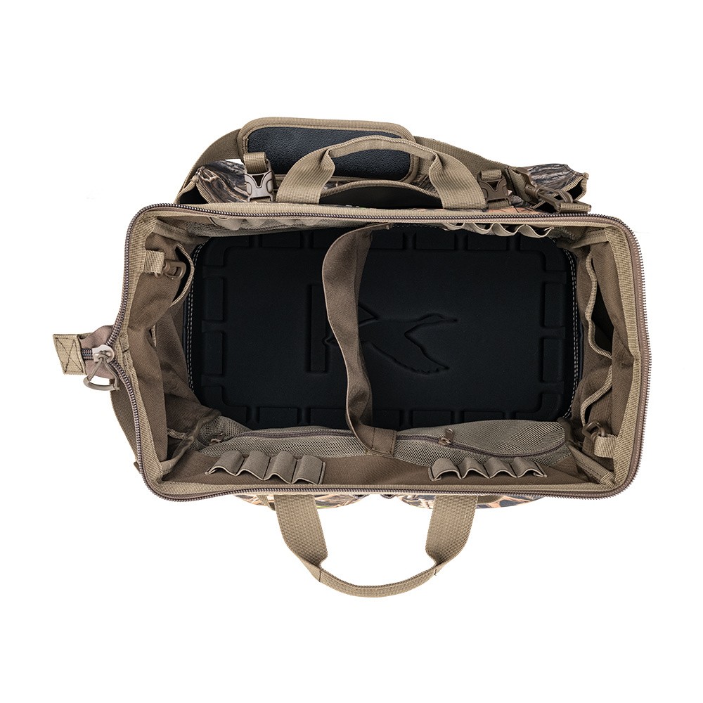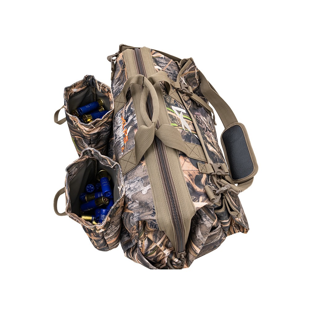 The Pit Blind Bag features a large pop-open main compartment with a removable divider to customize the content load. Additional interior pockets keep smaller items separated and within easy reach. Outside, the Pit Blind Bag boasts two hold-open pockets. These are designed to hold different shells organized and quickly accessible when switching between shot loads. An extra-large exterior pocket is also included to provide storage for a thermal beverage container or for use as an additional gear storage option.