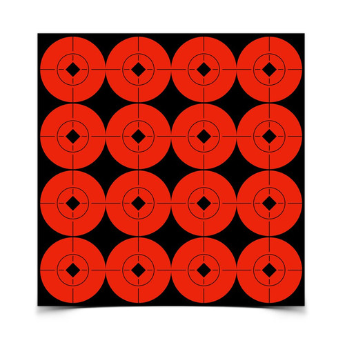 Convenient Target Spots® Self-Adhesive orange Targets create instant bull’s-eyes for all types of target practice. The high-contrast, radiant orange color lets you see a sharper sight picture and bullet holes more clearly for better scores and smaller groups.