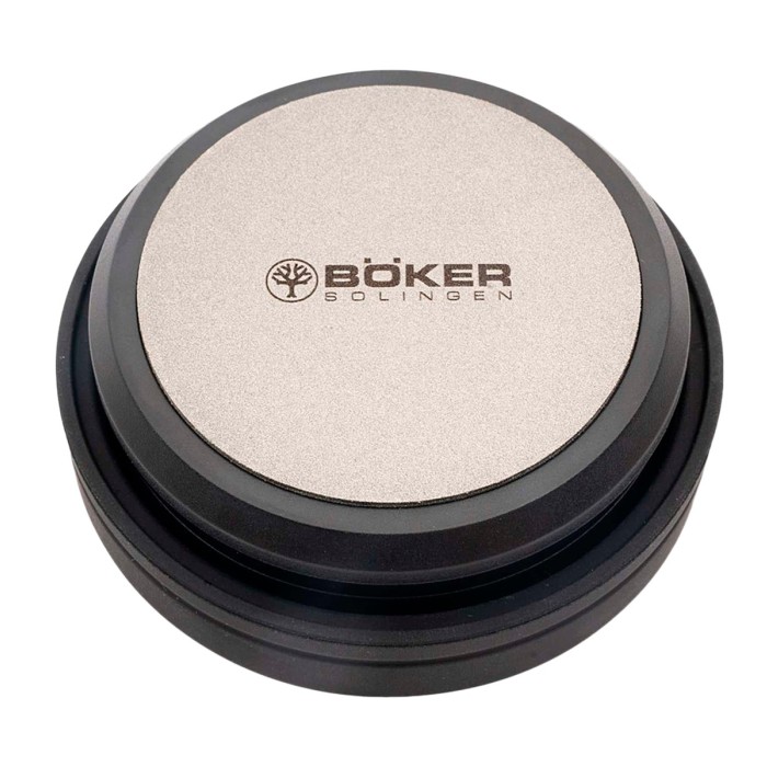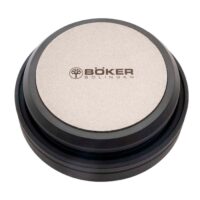 The Böker diamond and ceramic sharpening stone is a convenient and easy-to-use sharpening device for knives and garden tools. It is equipped with two grinding surfaces for coarse and fine grinding. The grain size of the side coated with industrial diamond is 350, the ceramic side with a fine surface finishes. Böker diamond and ceramic grinding stones can be used both dry and with water. The diameter of the grinding surfaces is 6 cm. Non-slip protective cover. Weight 236g.