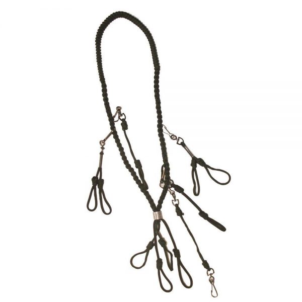 This heavy-duty Buck Gardner Lanyard HD lanyard is made from military grade paracord with a flat braid upper portion that wears comfortably around your neck, plus a round braid lower portion for customizing the call drops. The lanyard has four built-in call drops and also includes: 1 whistle drop, 2 clip-on double drops, and 2 clip-on single drops. Additional drops are sold separately.