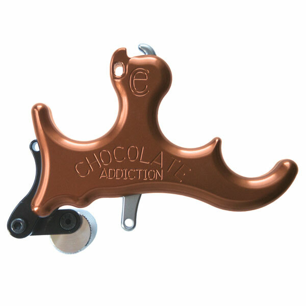 The Chocolate Addiction is Carter’s most adjustable releases. At the base of the trigger lever are three holes. The first one adjusts trigger travel while the other two are spring-loaded to affect trigger tension. The tension and travel setting options are endless. Thats not all folks. The cocking lever on the back closes the hook with one motion. Place hook on release rope or D-loop, and push cocking lever, simple as that.