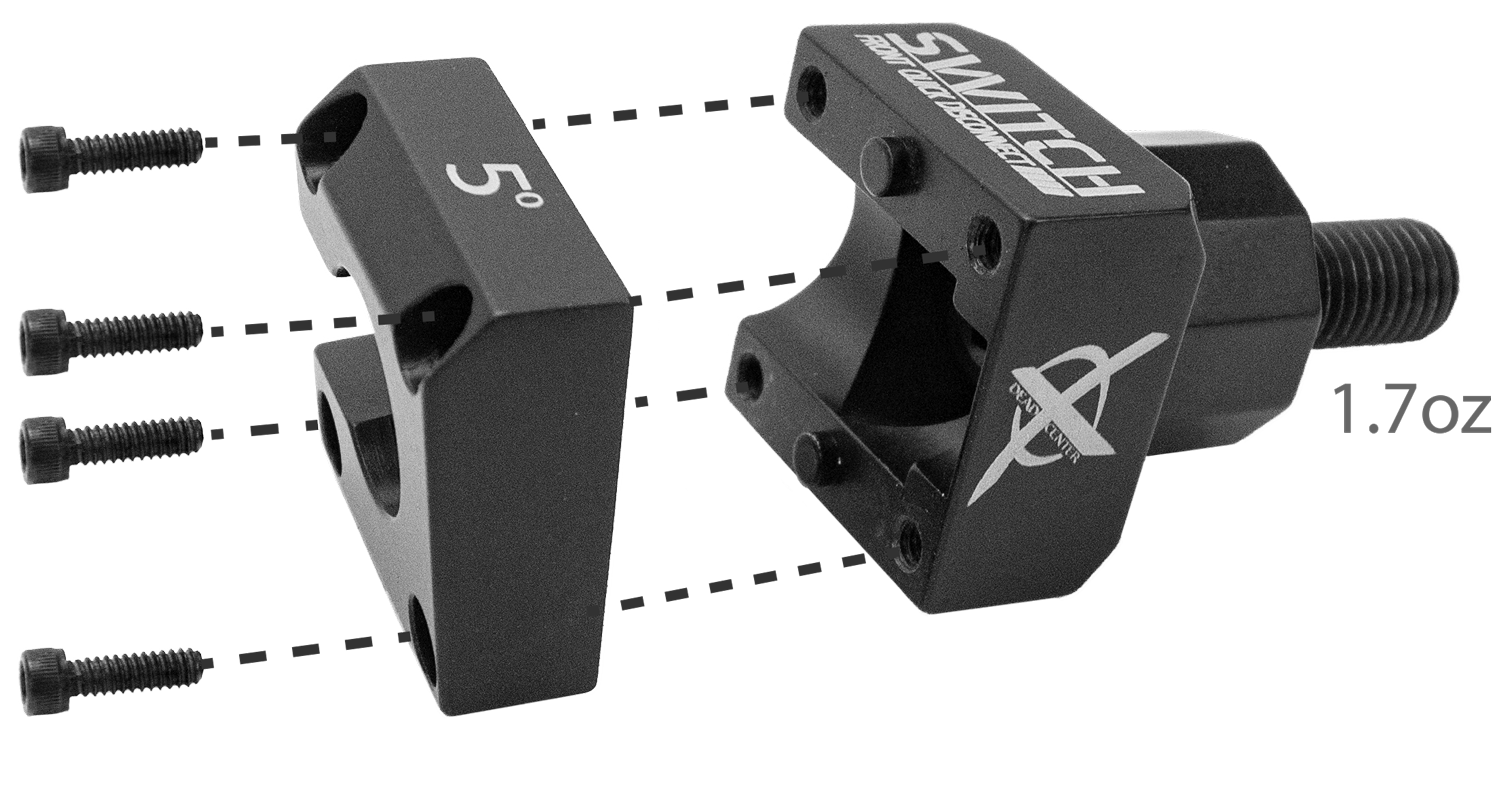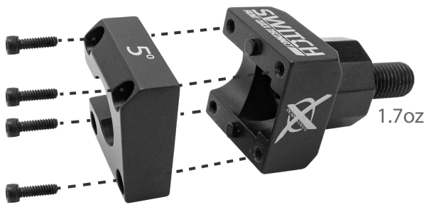 The FQD Switch features interchangeable face plates in 0, 5, 10 and 15 degrees to adjust the downward angle of your front stabilizer for the ultimate in versatility and customization