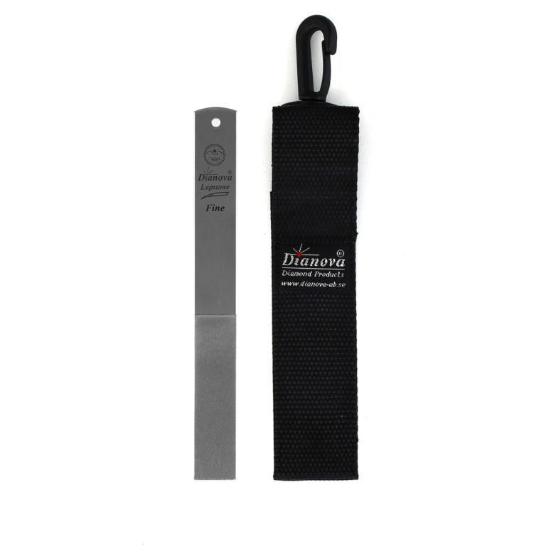 A Swedish-made professional-quality double-sided diamond knife sharpener with large diamond-covered surfaces with 300/600 grit (60/30 micron diamonds) or 600/1200 grit (30/15 micron diamonds) depending on variant. Cordura sheath is included.