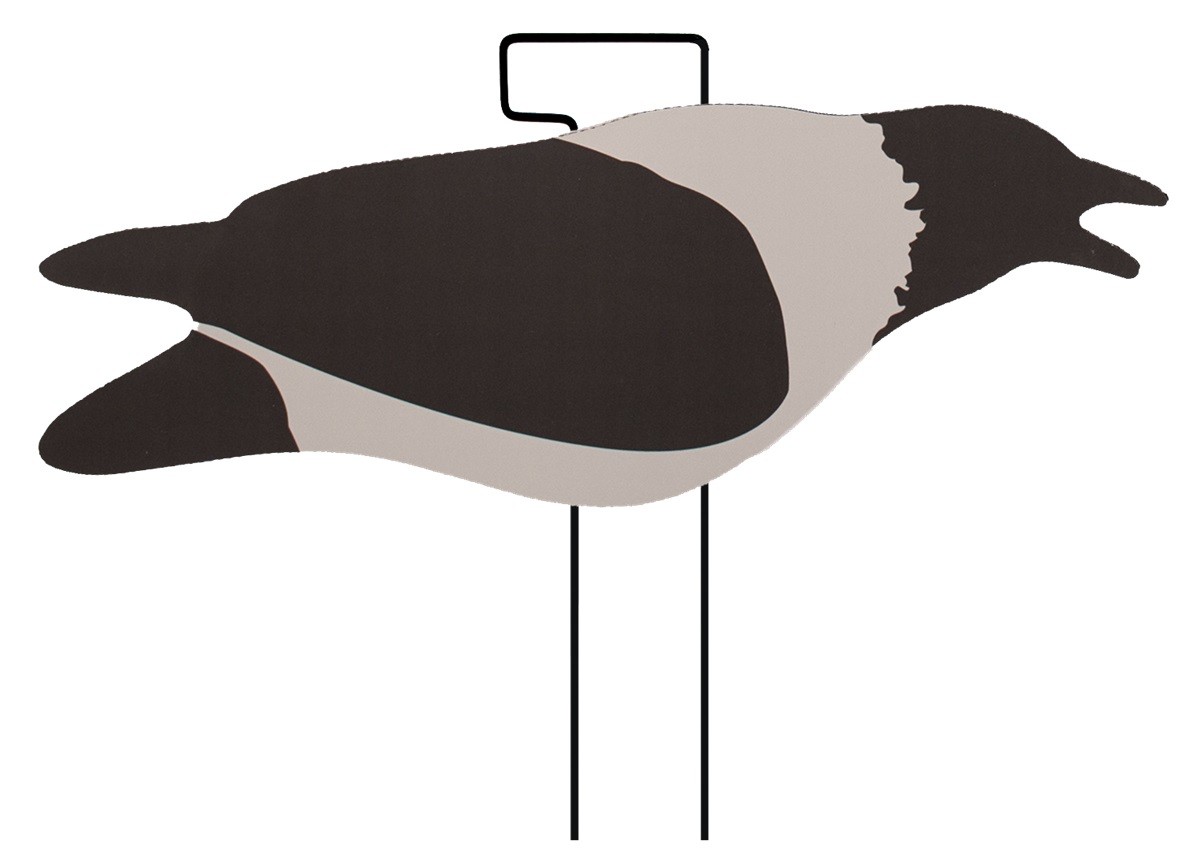 The Final Approach Last Pass Crow Silhouette Decoys offer excellent visibility and ease of handling with a simplified black and grey color scheme. These decoys allow you to create a realistic and convincing spread that is lightweight, easy to transport, quick to set up, and budget-friendly. Made from durable corrugated plastic (coroplast), they feature lifelike postures and a non-reflective surface that minimizes unwanted shine. The ergonomic Ez-Grab handle and spring steel stakes ensure fast and effortless installation and repositioning. This 12-piece set includes three different postures, creating a natural-looking decoy spread.
