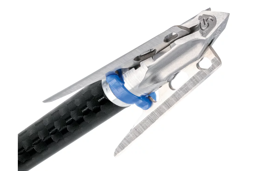 With 3 blades and a huge 2″ cutting diameter, the G5 Megameat Mechanical Broadhead does more than enough damage, and that means short blood trails with easier recoveries for you! An easy-to-use snap lock collar keeps the blades secure during flight for field-point accuracy while opening up to deliver a massive 2″ cutting diameter on impact. The chisel tip enhances the G5 Megameat Mechanical Broadhead’s ability to break through bone.