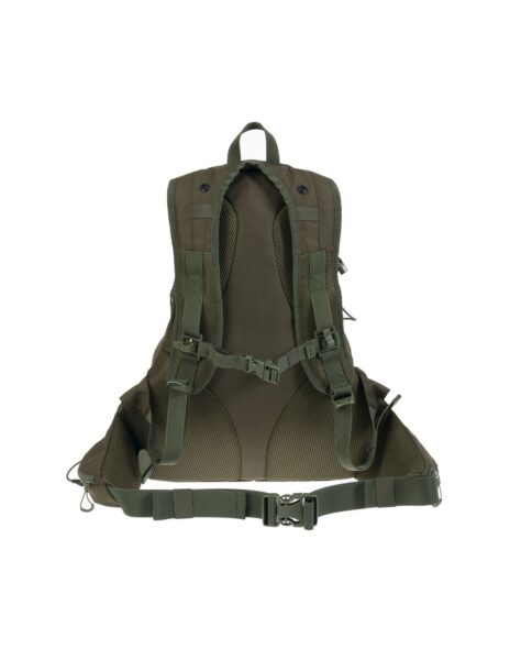 Lightweight but strong 500D waterproof fabric. It is perfect either for woodcock, partridge, and quail hunting with dogs or any outdoor activity like fast hiking or mountain trails. Compact capacity with a large opening and a water bladder compartment. Its enveloping shape provides stability. One front zippered pocket and two side zippered compartments. Elastic strings for additional load. Breathable foam padded backing system. Adjustable belt and straps. Pull-out blaze rain cover in the base zippered pocket.