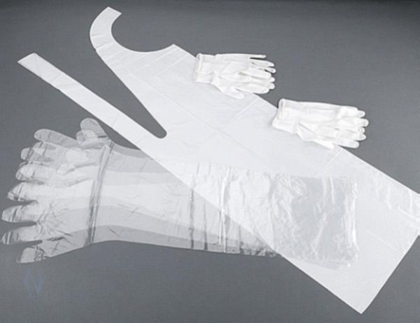 Kit comes with shoulder length gloves, plastic bag, wrist length gloves, plastic apron and plastic bag for heart and liver.