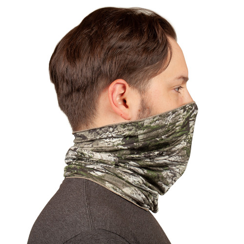 The Bluffwoods lightweight neck gaiter in Tarnen can be worn in a multitude of ways down by your neck or up around your face. Designed with a hybrid concealment pattern, the Tarnen camo hunting gaiter is made in a stretch poly-spandex material and is ideal for early to mid season hunts.
