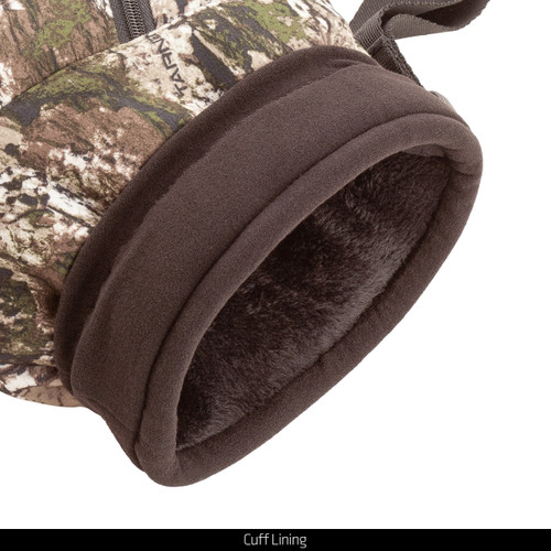 The Fargo heavyweight, insulated hunting muff in Tarnen has all the best features of a traditional muff and more. Designed with a hybrid concealment pattern, the Tarnen camo waterproof muff is made with a quiet tricot bonded to a soft fleece for a firm hand feel. A waterproof barrier keeps the moisture out and your hands dry.