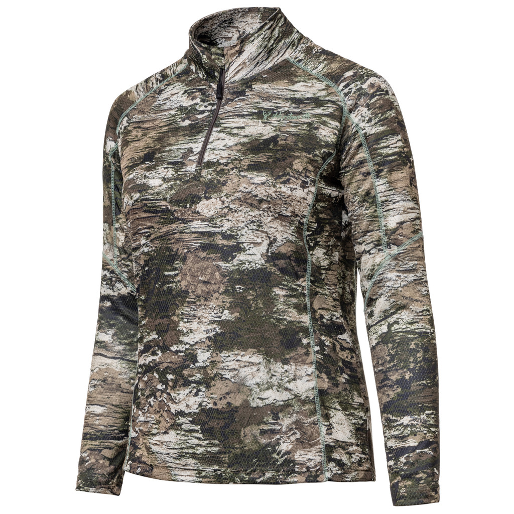 The women’s Gadsden lightweight hunting 1/4 zip in Tarnen® is a core hunting garment. Made with a hybrid concealment pattern, the Tarnen® camo pullover is constructed with a venting and wicking pique knit fabric. The loosely knitted weave allows air flow to keep you cool and draws moisture away from your skin to keep you dry. A chemical antimicrobial treatment controls your scent and allows you to remain concealed, even upwind.