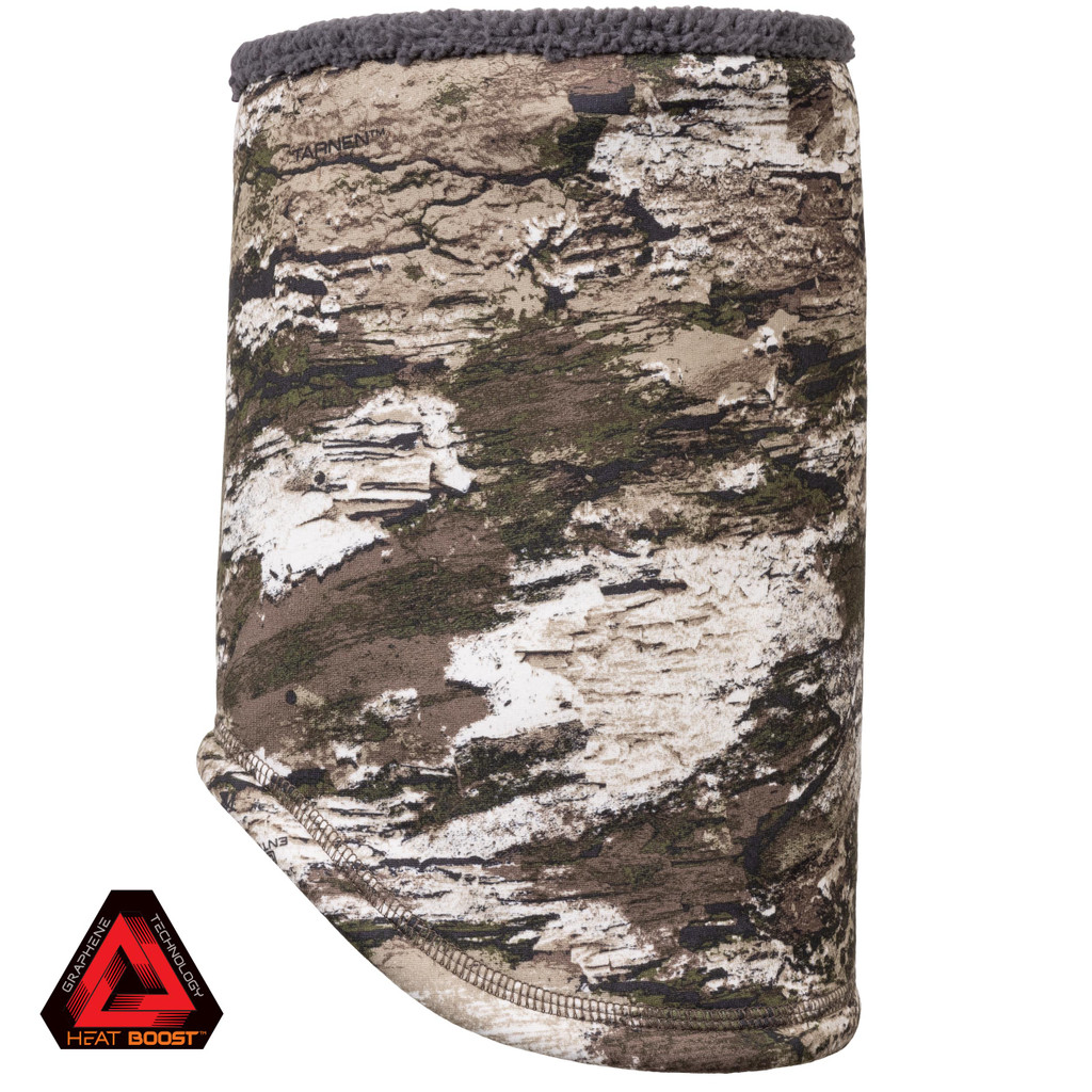 Keep the chill off your neck with the Anamoose softshell gaitor in Tarnen® camo. This hunting neck gaitor, made with Heat Boost™ graphene technology, belongs in everyone’s hunting bag. Surprisingly thin, it packs a lot of heat without the traditional bulkiness of other cold weather gaitors. Knitting graphene yarn into our sherpa lining super charges a tradtional material with the thermal conductivity, moisture wicking and antimicrobial capabilities inherent to graphene. In essense, we took a warm material and made it evern warmer– 30% warmer. It’s heat you can really feel.