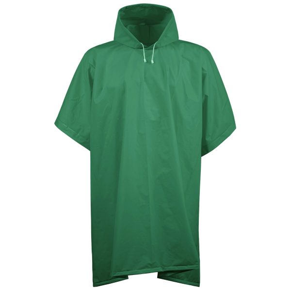 An easy-to-pack rain poncho with snap fasteners on the sides (2 snaps on both sides).