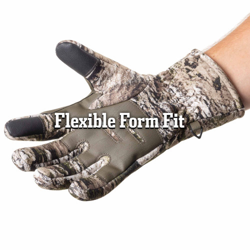 The gloves were built to keep you hunting, even as the temperatures drops. The exterior is a 4-way stretch peached polyester with a DWR finish that sheds light moisture. It is bonded to a film that blocks chilly winds from penetrating and Heat Boostâ„¢ graphene sherpa for insulating warmth. Touch screen enabled fingers tips enable you to use your devices. The extreme pre-curved finger construction allows the gloves to form to the shape of your hand, providing for a more natural fit. A rugged synthetic leather palm patch provides just the right amount of grip that nothing slips from your hands.