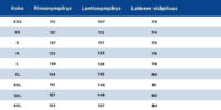 The Translation of the sizing terms on the size chart is as follows (in cm)
