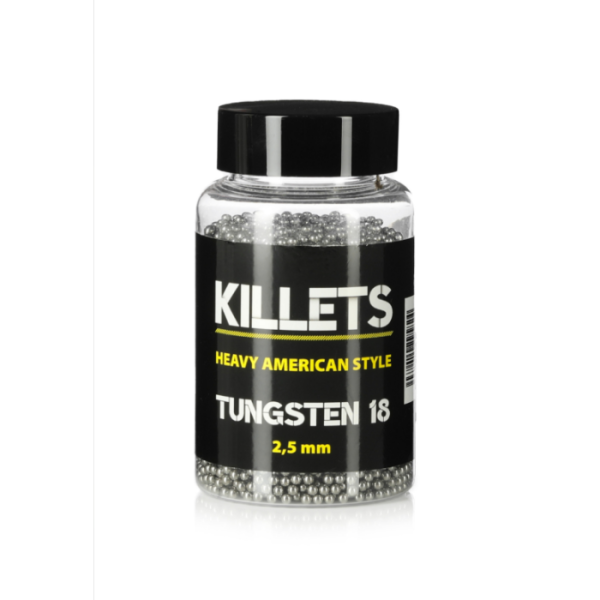 Ground, round shot. Specific weight 18g/cm3. As a shot material, tungsten is heavier and harder than lead. Tight shot patterns and heavy shots enable excellent penetration. When using tungsten shot, considerably smaller shots can be used compared to lead shot, so that the shot pattern is more covering and the effective shooting distance is longer. Tungsten is a non-toxic shot material and is legal to use for waterfowl hunting.