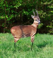 The theater of the woods becomes much more entertaining watching elder bucks run to put this roe deer decoy in its place. This young guy, with its ears back and aggressive posture, is a deer decoy that invites a challenge from the boss.