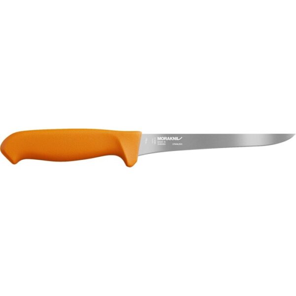 The Morakniv Hunting Narrow Boning butcher knife has a particularly narrow and flexible blade. It is designed for fast and accurate work. The blade is made of stainless steel. The handle of the knife is made of plastic and is easy to clean.