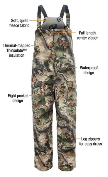 Designed to complement the ScentLok BE:1 Fortress Parka and complete the elite-level late-season bowhunting apparel suite, the 100% waterproof, windproof, and breathable BE:1 Fortress Bib features a soft, quiet, and flexible brushed fleece shell fabric, thermal-mapped PrimaloftTMÂ Silver insulation for perfect warmth, and proprietary ScentLok Carbon AlloyTMÂ technology for maximum odor adsorption.