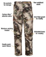 This mid-weight, single-layer pant is engineered and cut for ease-of-movement and mobility. The brushed, premium fleece fabric face and knit interior are deadly quiet while providing the ideal amount of warmth. The BE:1 Voyage Pant also incorporates ScentLok Carbon AlloyTM technology for maximum odor adsorption and a wicking treatment for moisture management. It sports a convenient six-pocket design, articulated knees for range of motion, plus an inner-thigh gusset for flexibility and comfort without binding.