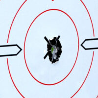 Capture the same Shoot•N•C® experience in white and black. The contrast of white over black makes an excellent indoor target. The black “halo” can easily be seen at many distances. When used indoors or outdoors, the white over black colors make seeing your crosshairs and open sights very easy. The added posts on the 12 inch targets make for great crosshair reference points. And, don’t forget each target comes with value-added repair pasters to extend the life of your target by repairing bullet holes or as extra aiming points. Perfect for all firearms and calibers.