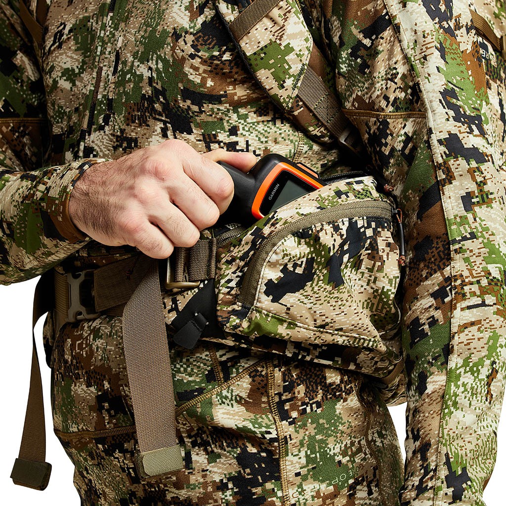 Streamlined for stealth with a durable build and easily-deployable components that place essential gear at a hunter’s fingertips, the Apex redefines the day pack. The low-profile frameless design reduces noise and abrasion while providing an ample 1,800 cubic inches of storage for days when a morning glassing session turns into an all-day stalk. A body-hugging waist belt features multiple pockets, including easily deployable/retractable cam cables to rest your bow when waiting out a close encounter with a stubborn bull.