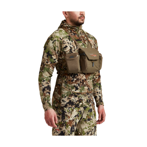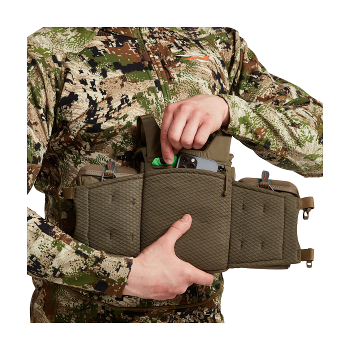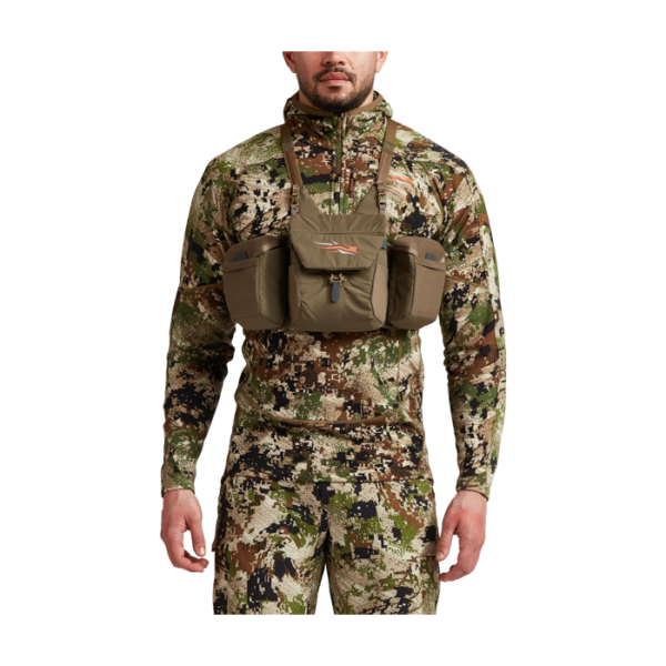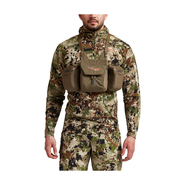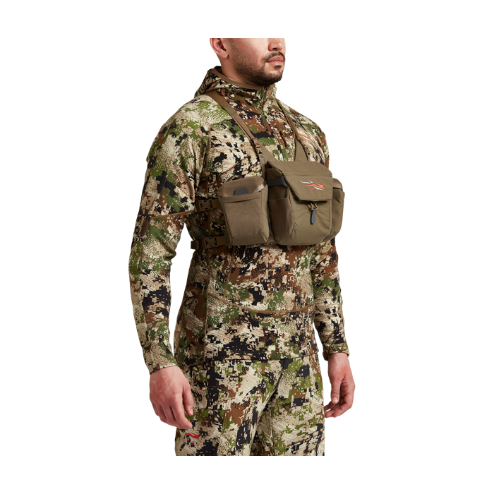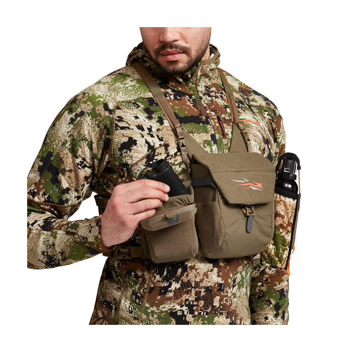 Get fast, easy access to your binos and essential gear with this streamlined chest pack that keeps your stuff at the ready while preventing it from bouncing around. We recognized a problem in carrying around bulky packs laden with cumbersome attachments, and we took inspiration from military chest rigs in designing this modular solution. The result is a stealthy and convenient system that lets you quickly and efficiently access your optics and other gear—whether you’re making a long hike in, moving between glassing points, or in the middle of a stalk. Plus, it’s adaptable, giving you the ability to add or subtract elements to fit any given situation, season, or hunting style.