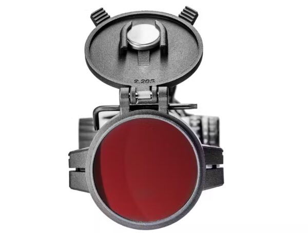 A high-quality and extremely durable front lens cover screws onto the filter thread and provides complete protection in all weather conditions. The cover can be attached in any position and is suitable for both right- and left-handed shooters. The field of view is not compromised, and the cover is very easy to use during hunting. Available for 24mm, 50mm, and 56mm objective diameters.